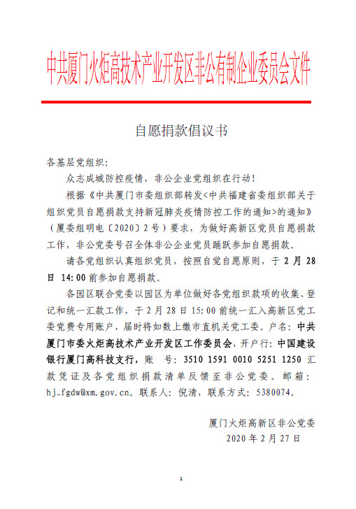 作為L(zhǎng)ED制造行業(yè),乾照黨總支大部分黨員的工作區(qū)域是在完全封閉并要求無(wú)塵的車間中,沒(méi)有網(wǎng)絡(luò),手機(jī)甚至是喝水的杯子都不允許隨意帶入。進(jìn)入車間后,每個(gè)人都“全副武裝”:防塵服、鞋套、口罩缺一不可,個(gè)人物品均需放置在固定的區(qū)域。也正因?yàn)檫@樣特殊的工作環(huán)境,黨員干部以及積極向黨組織靠攏的積極分子們更能體會(huì)前線物資的寶貴。不能讓前線缺了物資!也是這樣的信念,讓在工作時(shí)間“隔絕外界”的乾照黨員們,在收到自愿捐款倡議的第一時(shí)間紛紛獻(xiàn)出了自己的一份心意,匯總表一再更新,款項(xiàng)總數(shù)一次次增加:500元、1500元、2588元、3888元、4388元……5338元不是終點(diǎn),乾照黨總支會(huì)緊跟上級(jí)黨委的步伐,為抗擊疫情工作持續(xù)奉獻(xiàn)屬于乾照黨員的一份力量!