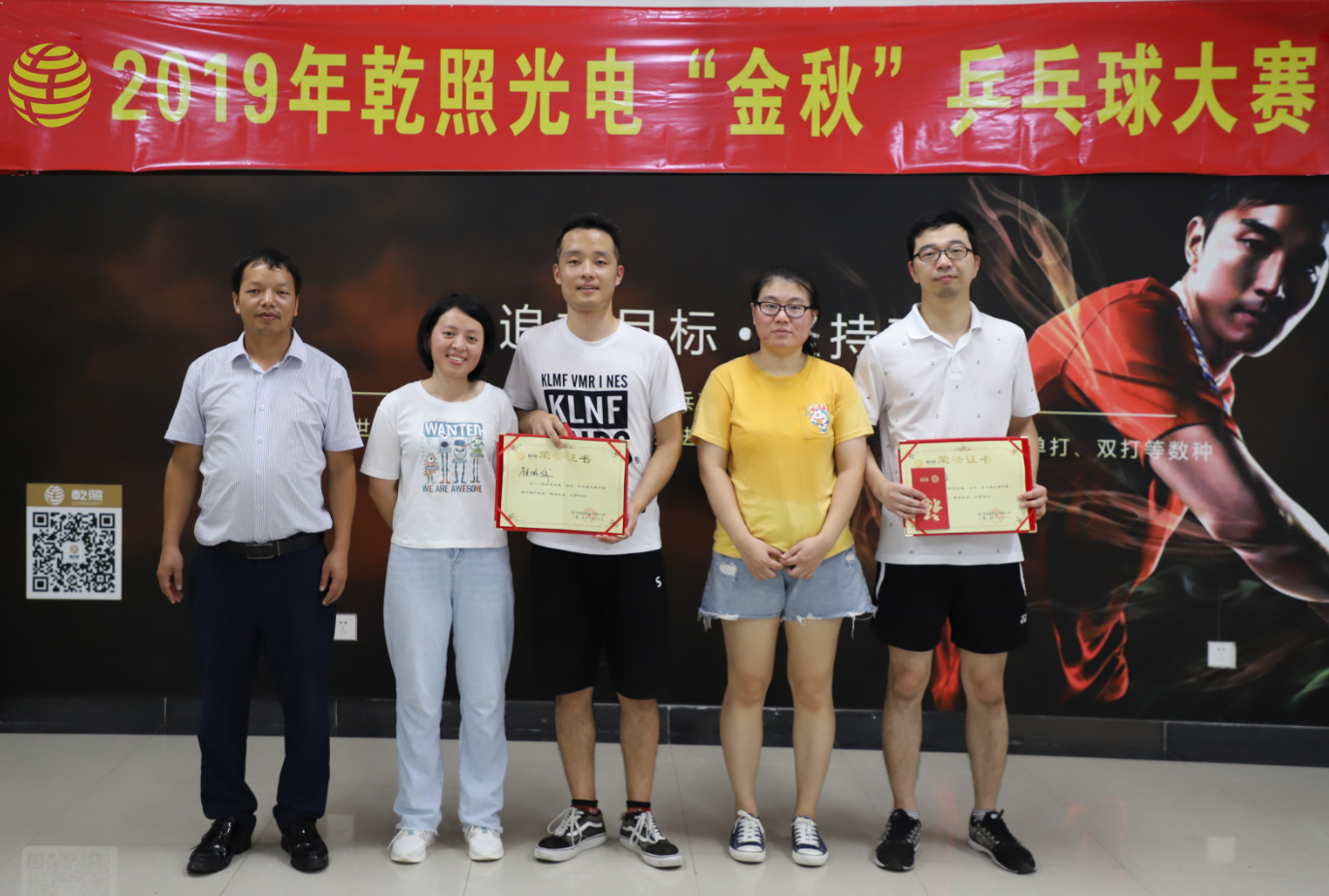 8月19日—26日,乾照光電乒乓球社舉辦了2019年乒乓球大賽。經(jīng)過海選賽、復(fù)賽、半決賽和決賽的激烈角逐,最終品管部周耀東、芯片制造部侯福山、總裁辦解鵬越、整合部林鋒杰分別獲得男子單打冠、亞、季軍和第四名;品管部顏姍姍、未來顯示研究院段方方和銷售管理部林志鋌分別獲得女子單打冠、亞、季軍;品管部周耀東、技術(shù)中心陳婉菁和總裁辦解鵬越、未來顯示研究院馮妍雪分別獲得男女混雙冠軍和亞軍。通過本次球賽,賽出了成績,也賽出了風(fēng)采。運(yùn)動與快樂并行,高效與實力同在!