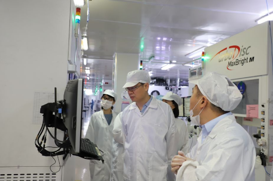 陳區(qū)長先后參觀了公司展廳及生產(chǎn)車間,集團(tuán)藍(lán)綠事業(yè)部總經(jīng)理、江西乾照光電總經(jīng)理劉兆向陳區(qū)長詳細(xì)介紹了產(chǎn)品的工藝流程。陳區(qū)長對(duì)乾照光電的產(chǎn)品及項(xiàng)目進(jìn)行深入的了解,并就關(guān)心的問題與陪同人員進(jìn)行深入的交流。