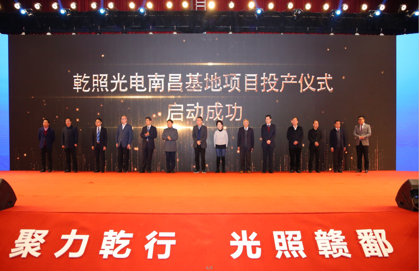 光電產(chǎn)業(yè)項(xiàng)目合作簽約儀式之后,江西省、南昌市、新建區(qū)黨政領(lǐng)導(dǎo)及參會(huì)的專(zhuān)家、企業(yè)代表與乾照光電董事長(zhǎng)金章育、總裁蔡海防共同參加了乾照光電南昌基地項(xiàng)目投產(chǎn)儀式慶典。