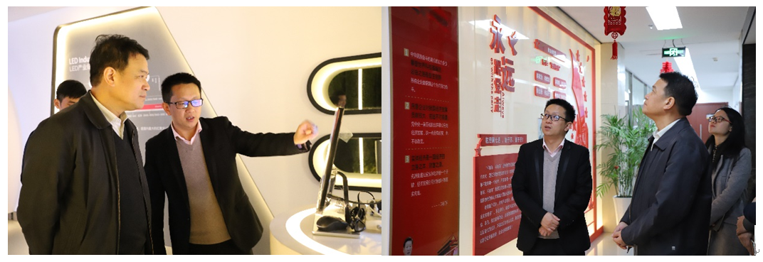 張書記一行參觀了公司展廳,了解了企業(yè)生產(chǎn)經(jīng)營情況,并參觀了黨建文化墻、黨群活動(dòng)中心和黨建活動(dòng)室。他表示,乾照光電能夠充分發(fā)揮場地優(yōu)勢進(jìn)行黨建文化氛圍建設(shè),形式好、內(nèi)容實(shí),值得園區(qū)內(nèi)的其它非公企業(yè)學(xué)習(xí)借鑒。