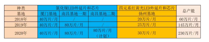 首先分享一下乾照的產(chǎn)能情況。乾照光電南昌基地分兩期共投資50億元。其中一期工程于2018年1月正式動(dòng)工,2018年12月建成并投產(chǎn),將新增氮化鎵LED外延片和芯片產(chǎn)能80萬(wàn)片/月(折合2英寸)。二期工程將根據(jù)市場(chǎng)情況擇機(jī)動(dòng)工,將在一期工程的基礎(chǔ)上再增加80萬(wàn)片/月的產(chǎn)能。