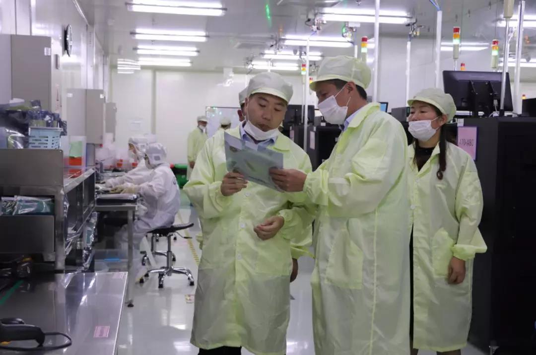 隨后,饒書記一行前往外延和芯片生產(chǎn)車間進行參觀。劉兆簡要介紹了外延芯片生產(chǎn)制作流程和質(zhì)檢工作程序,并對芯片的檢測方式進行了詳細的講解。饒書記對江西乾照光電的發(fā)展態(tài)勢給予了肯定,并關切地詢問了公司對加強和改進營商環(huán)境的意見建議。