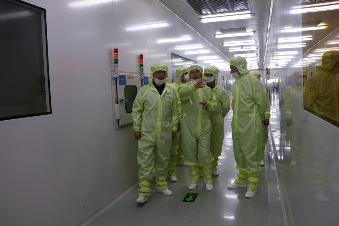 李廳長一行前往芯片蒸鍍、清洗、黃光站、點(diǎn)測站等生產(chǎn)車間進(jìn)行了參觀。劉兆引導(dǎo)大家觀看了車間內(nèi)生產(chǎn)設(shè)備的操作情況,對芯片的生產(chǎn)制作流程進(jìn)行了講解。李廳長認(rèn)真觀摩了產(chǎn)線的各個(gè)環(huán)節(jié),對企業(yè)現(xiàn)代化的生產(chǎn)技術(shù)和設(shè)備的運(yùn)作程序表示高度贊賞。同時(shí)還認(rèn)真聽取了劉兆對公司目前發(fā)展情況的詳細(xì)匯報(bào),對江西乾照光電目前的發(fā)展態(tài)勢給予了肯定。