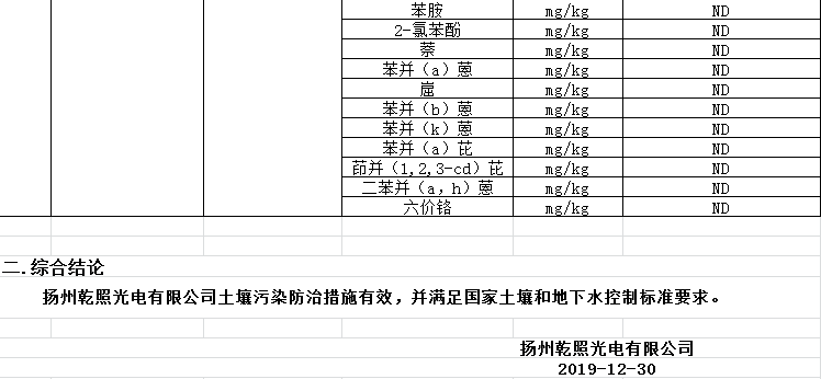 乾照光電2019年土壤、地下水檢測(cè)公告 來(lái)源: 發(fā)布時(shí)間:2019-12-30 揚(yáng)州乾照光電有限公司 2019年土壤、地下水檢測(cè)公告 依政府主管部門(mén)要求,揚(yáng)州乾照光電有限公司對(duì)2019年土壤和地下水砷檢測(cè)情況進(jìn)行公告。 廠區(qū)內(nèi)土壤和地下水檢測(cè)費(fèi) 廠區(qū)外土壤和地下水檢測(cè)費(fèi)