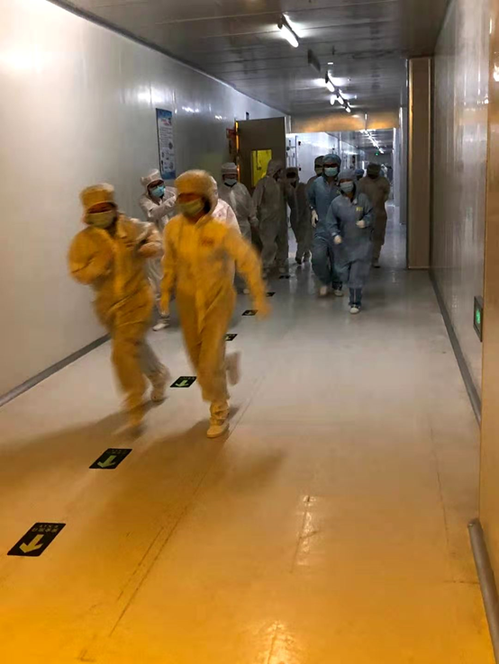 本次演練以16:19蒸鍍車間發(fā)生火災(zāi)為假想場景,由初期自行應(yīng)急處置和啟動應(yīng)急響應(yīng)機(jī)制兩部分組成。整個演練過程緊緊圍繞發(fā)現(xiàn)火情、預(yù)警及響應(yīng)、應(yīng)急處置、指揮協(xié)調(diào)、人員疏散、集合清點(diǎn)、接觸警報等重點(diǎn)環(huán)節(jié)展開。16:21應(yīng)急疏散演練指揮部下達(dá)撤離命令,要求全體人員在疏散引導(dǎo)員組織下沿安全疏散通道快速撤離。16:24全體人員到達(dá)緊急疏散集合地點(diǎn),合計耗時5分14秒。本次演練全程協(xié)調(diào)有序、示范性強(qiáng),情景逼真。