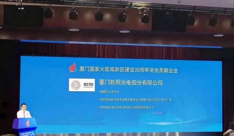 三、乾照光電榮獲“廈門國家火炬高新區(qū)建設(shè)30周年突出貢獻企業(yè)”稱號