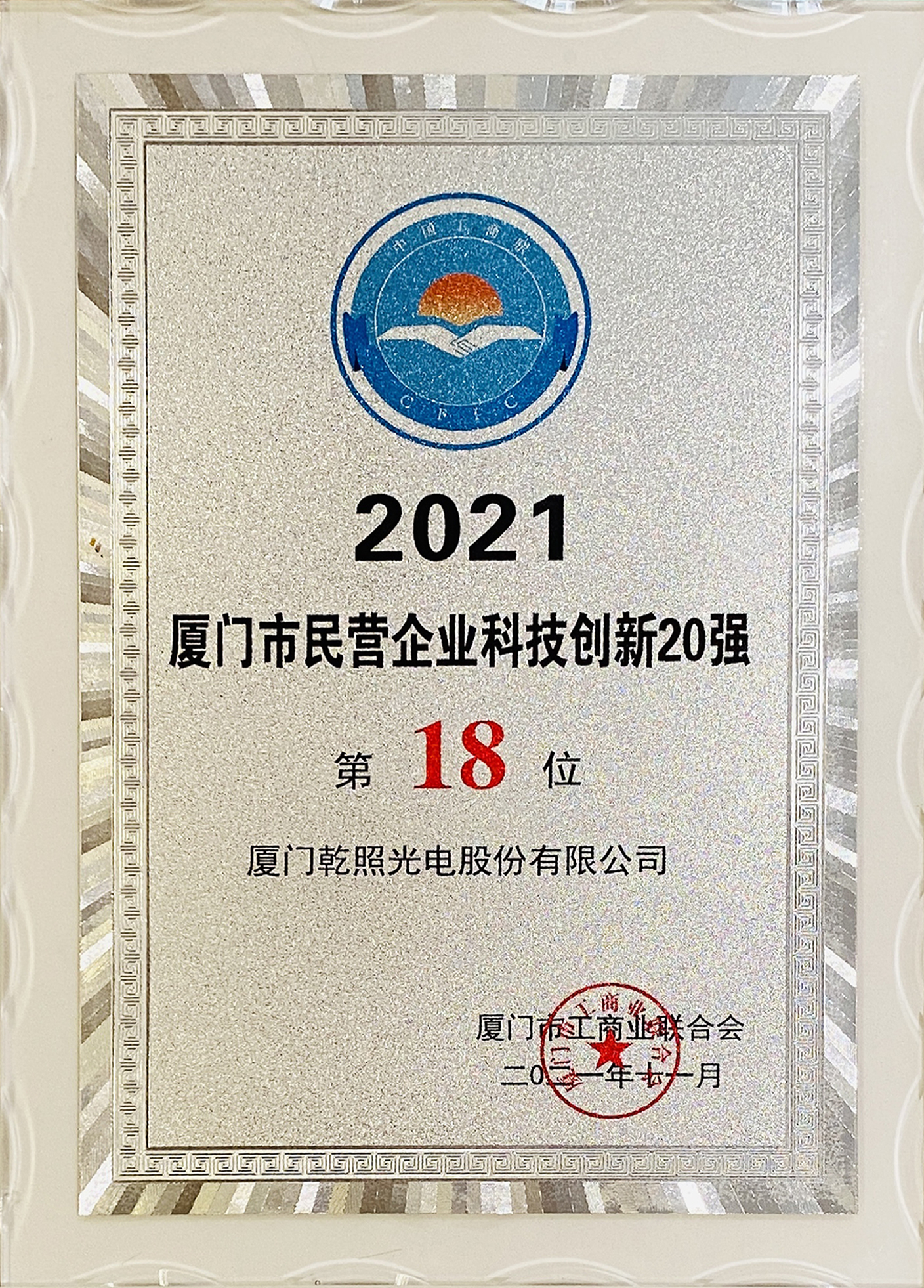 七、乾照光電榮獲“2021福建戰(zhàn)略性新興產(chǎn)業(yè)企業(yè)100強”&“2021廈門市民營企業(yè)100強”