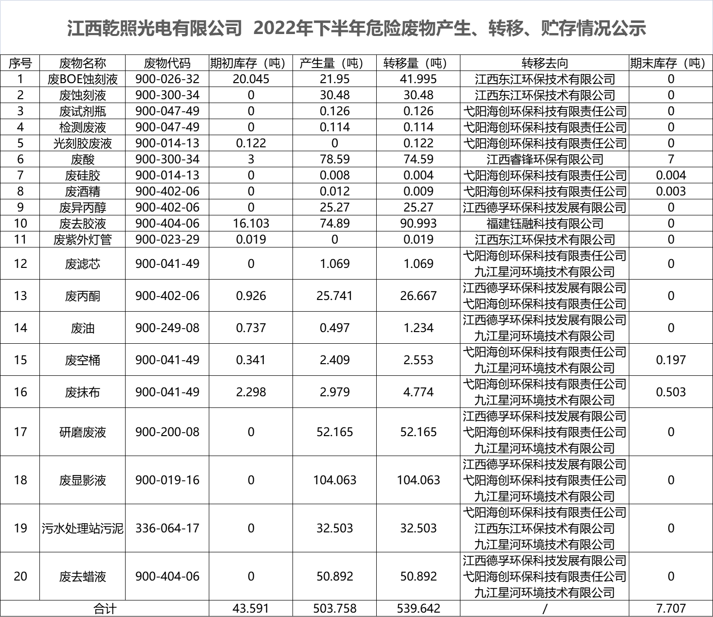 江西乾照光電有限公司2022年下半年危險(xiǎn)廢物產(chǎn)生、轉(zhuǎn)移、貯存情況公示