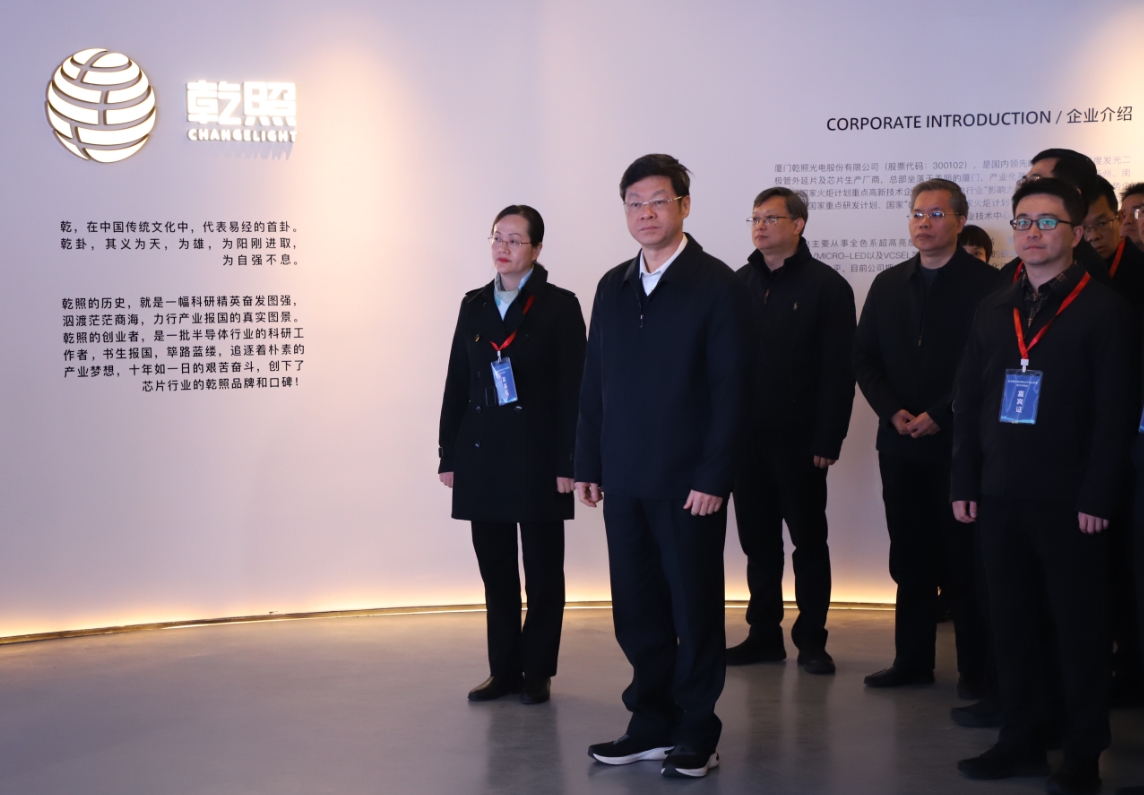 為考察縣域重點(diǎn)產(chǎn)業(yè)鏈發(fā)展,1月29日福建省副省長林瑞良、黨組成員康濤帶隊(duì)走訪乾照光電。省政府辦公廳、省工信廳、省發(fā)改委、科技廳、財(cái)政廳、省政府發(fā)展研究中心推動(dòng)縣域重點(diǎn)產(chǎn)業(yè)鏈高質(zhì)量發(fā)展專班成員單位有關(guān)負(fù)責(zé)同志;廈門、漳州、泉州、龍巖、三明市政府分管領(lǐng)導(dǎo)、市工信局有關(guān)負(fù)責(zé)同志及所轄區(qū)(市、區(qū))政府主要領(lǐng)導(dǎo)參加考察。乾照光電董事長金章育陪同接待。