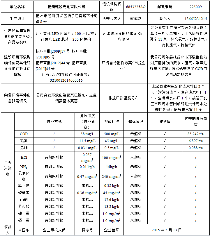 揚州乾照光電有限公司環(huán)境信息表