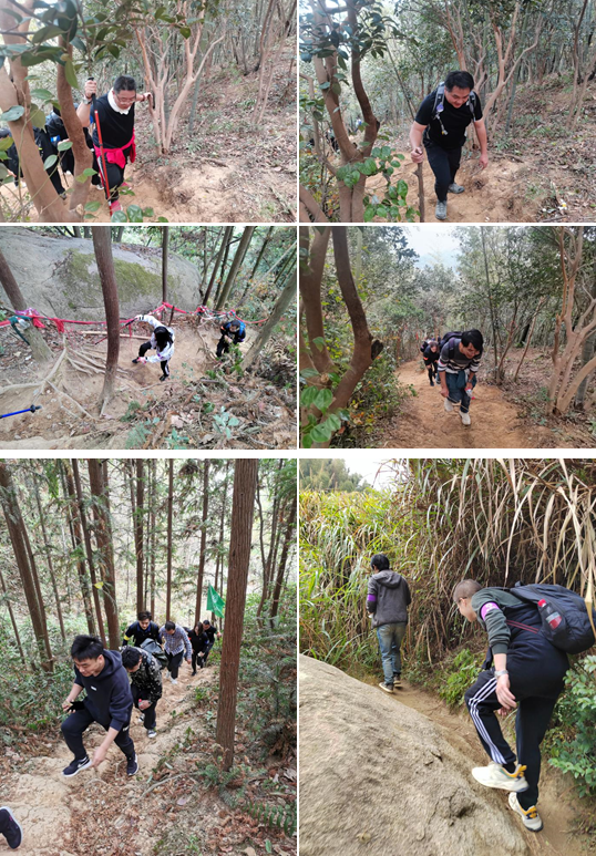 陡峭的山路,嶙峋的怪石路障,近乎垂直的崖壁……老四坡顧名思義四個(gè)坡,一個(gè)坡比一個(gè)坡險(xiǎn)峻,難度遠(yuǎn)比大家預(yù)想的艱巨。乾照精英們并沒退縮,成員間相互鼓勵,相互扶持,大家?guī)е拍畹膽?zhàn)旗,一路爬坡,一路登頂。風(fēng)聲、腳步聲、呼吸聲、加油聲,大家感受著來自團(tuán)隊(duì)的力量。中午在雷公壇匯合,短暫的就餐休整后,各參賽隊(duì)伍重回賽道,奮進(jìn)再出發(fā),最終順利完成余下的挑戰(zhàn)。