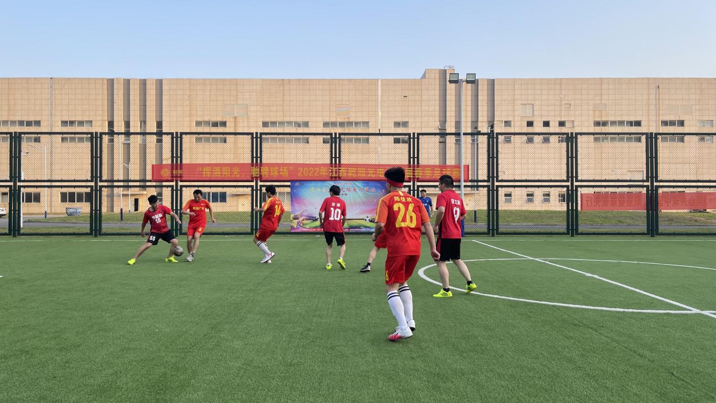 接下來的綠茵賽場,雙方隊員頑強拼搏,進攻、防守,球員們腳下功夫了得,不論是搶球,傳踢,氣勢凌厲。場外觀眾也激情洋溢,縱情地為隊員們加油,現(xiàn)場氣氛十分熱烈。在經(jīng)過幾輪積分循環(huán)賽,最終綜合隊、外延隊、芯片隊和廠務(wù)隊挺進決賽。