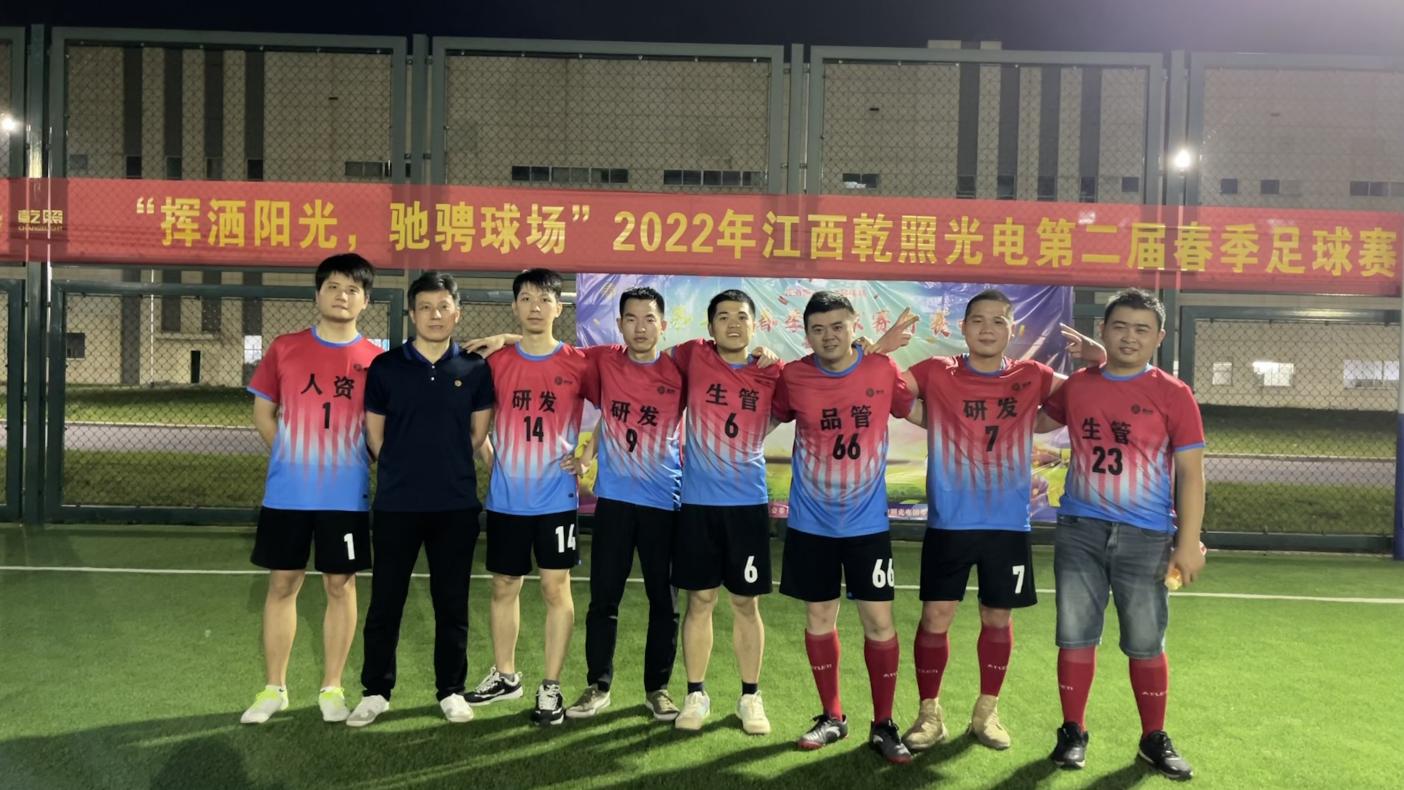 此次比賽給公司廣大足球愛好者提供了一個在綠茵場上展現(xiàn)球技、揮灑汗水的舞臺,同時也體現(xiàn)了“乾照人”團結(jié)拼搏、積極向上的精神面貌,豐富了員工的業(yè)余文化生活,促進了各部門員工之間的交流。讓汗水在球場揮灑,讓青春在賽場飛揚,踢出健康生活,活出精彩人生!
